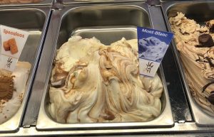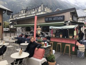 We feel our hunger with the effect of wonderful mountain air. We go directly to Cool Cats, the place I discovered when going around yesterday with its alternative hot dogs and delightful tables outside. We enjoy a delicious lunch while enjoying the sun. We close the day by eating the famous Mont-Blanc cake of the region at Josephine Cafe.