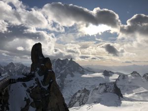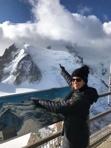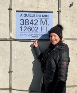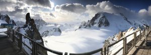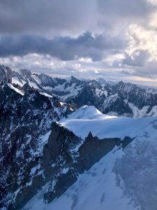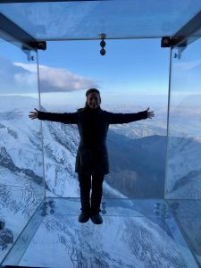 Here we go again! In the second stage, the steepness increases and the ropeway is now climbing almost a ninety degree slope to the top. Mont-Blanc has a magnificent beauty but at the same time the wildness looks scary. We reach the “Aiguille du Midi” which is at an altitude of 3,842 meters. When I walk up to the terrace here, I’m stuck where I am at first, because the wind and hum are incredibly loud. Then I go slowly to the railings to watch the enchanting and mighty Mont-Blanc. I can’t breathe from the cold and the scenery I’ve seen!