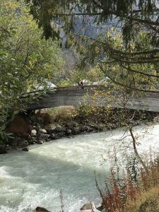 With a height of 1,035 meters and a population of 8,906, this small and very lively town is a worldwide center for mountain sports. You can’t go skiing in October, but people from all over the world come here for climbing and hiking, enjoying the mountains and the wonderful fresh air. It is in Chamonix that I learn there is a sport called Alpinism which includes rock, snow and even glacier climbing in four different categories. I am advised a hiking route with low level of difficulty and get my share of Alpinism.